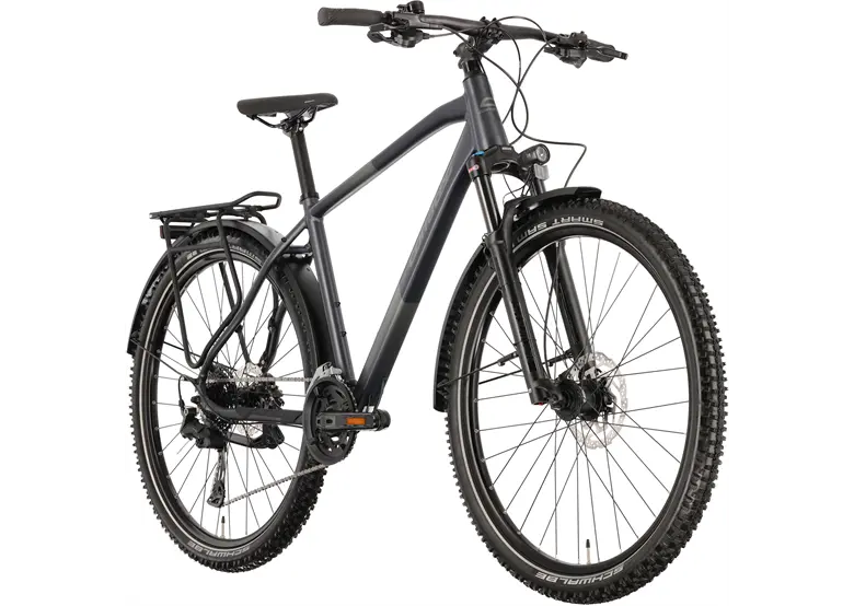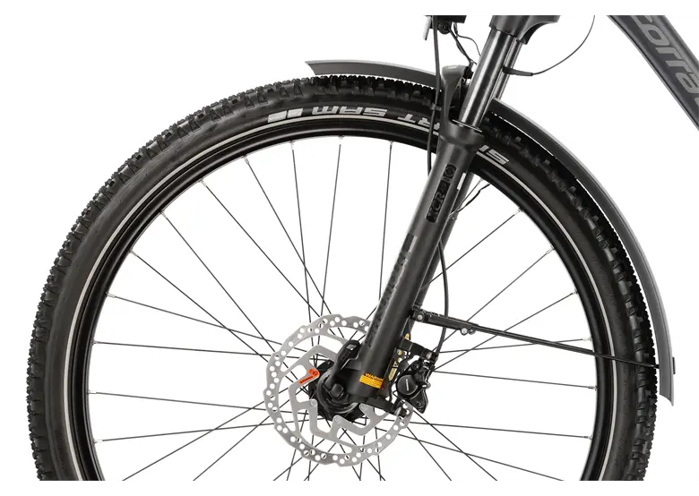 Pełne oświetlenie i odblaski zgodne z niemiecką normą STVZO sprawiają, że możesz bezpiecznie poruszać się po zmroku i być widocznym dla innych osób. Na wyposażeniu modelu MTC Elite znajdują się również dzwonek, bagażnik i podpórka, które właściciel będzie z pewnością wykorzystywać. Przydadzą się zarówno podczas codziennych dojazdów, jak i dłuższych wypraw.