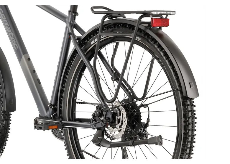 CORRATEC MTC Elite to rower trekkingowy, który sprawdzi się zarówno na miejskich ścieżkach, jak i leśnych duktach. Ma on wszystko to, czego potrzebujesz do komfortowej i bezpiecznej jazdy – od wytrzymałej ramy aluminiowej po precyzyjny napęd Shimano, skuteczne hamulce tarczowe i opony zapewniające przyczepność w każdych warunkach. Na wyposażeniu znajdują się także dodatki – bagażnik, oświetlenie i podpórka. Ten model to idealny kompan na bliższe i dalsze podróże.